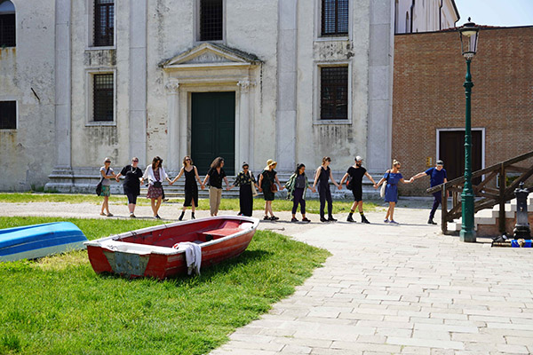 We guided participants through a sensory engagement with the island of Giudecca, navigating the bridges and courtyards and co-operating through touch and voice as they climbed and descended the steps of the numerous bridges. At certain points the person at the back of the line was 'let go' and invited to remain in the place they were left for several minutes, with their eyes closed, before documenting their experience in some form.
